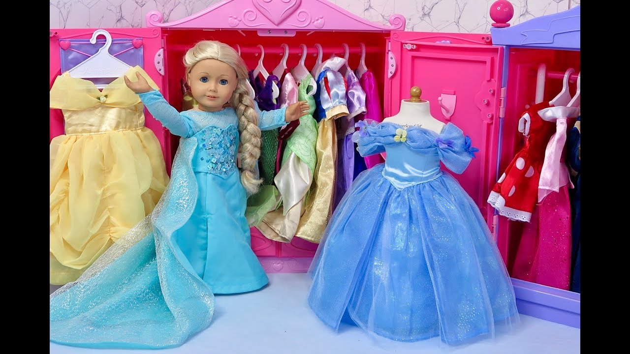 American Girl Doll Disney Princess Wardrobe in Doll Room! Dress Up & Wardrobe Play! ─ agoverseasfan