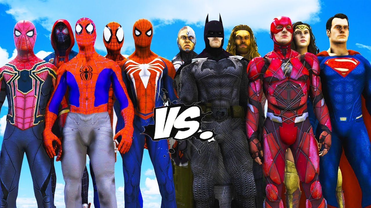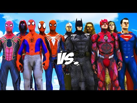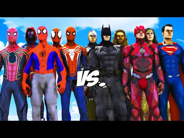 ALL SPIDERMAN SUIT VS JUSTICE LEAGUE - Batman, Superman, The Flash, Wonder Woman, Aquaman, Cyborg