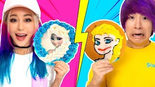 GF VS BF Cake Icing Art Challenge! Learn To Make Elsa, Pikachu, Roblox ─ Wengie